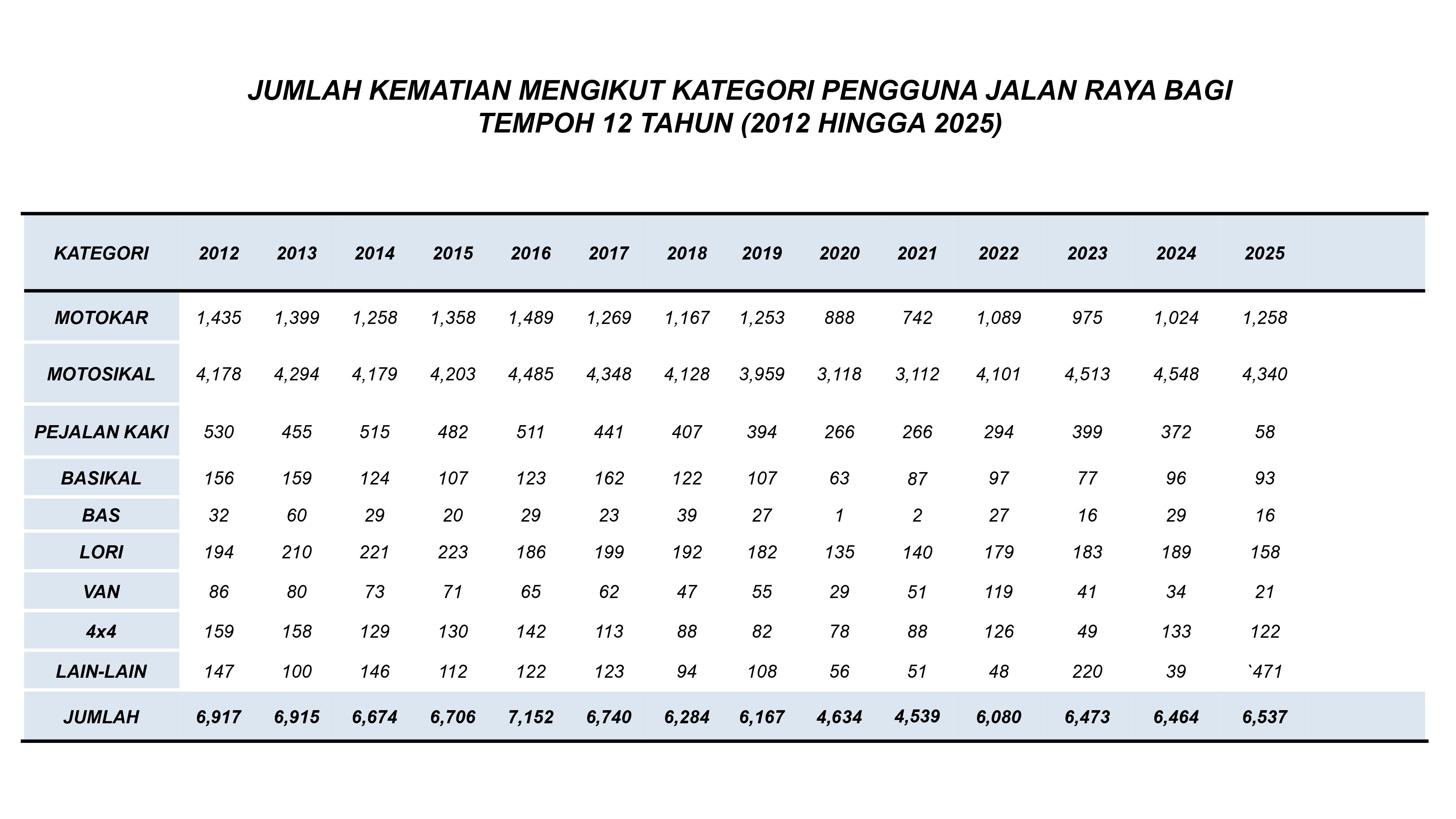 Evidence-based insights into road traffic crashes, fatalities, and trends across Malaysia. Understanding the data helps us identify risks, measure progress, and save lives.